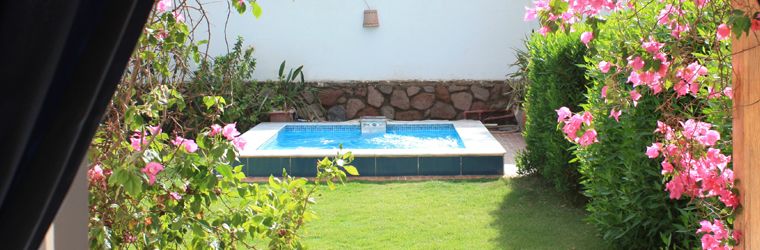 This spacious, modern two bedroom apartment sleeps 4 people comfortably. Newly furnished with quiet air-conditioning in both bedrooms. Private sunny terrace with outdoor patio furniture, secluded garden with Jacuzzi pool and BBQ.